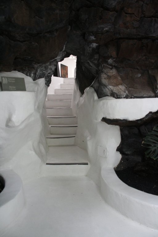 | Piano superiore. Vista esterna | Salotto ricavato da bolla vulcanica | Altra stanza con albero e scultura | Sala da pranzo |