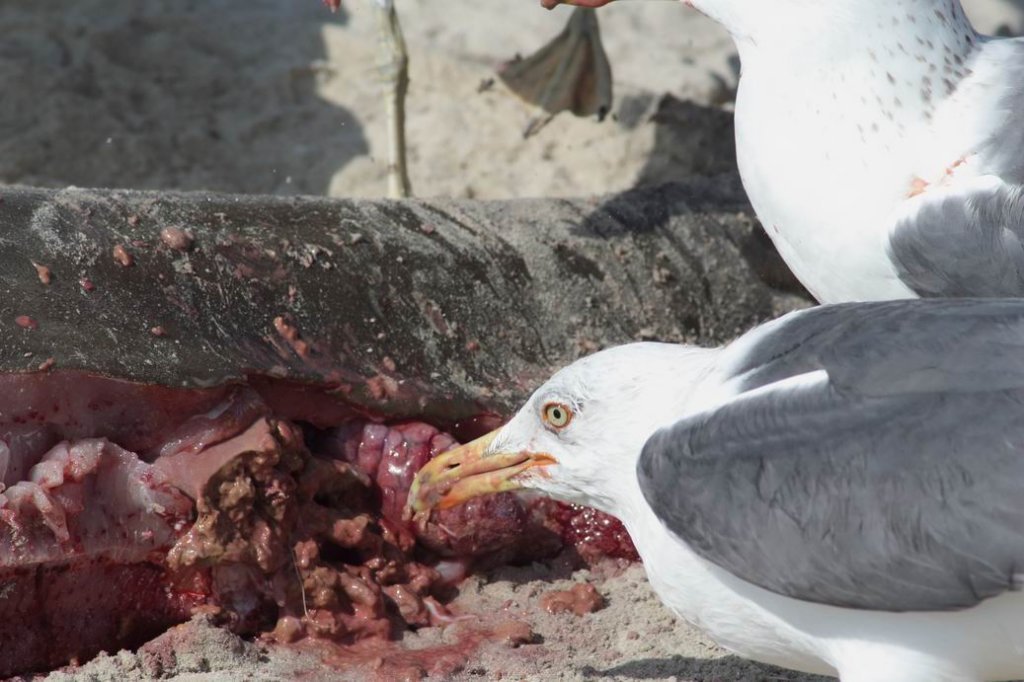 | Partenza | Grande carcassa spiaggiata (circa 10 mt di lunghezza) | gabbiani in attesa | Qui non si butta via niente |